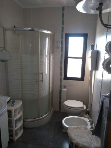 Casa principal con 3 dormitorios, escritorio, cocina comedor, estufa a leña y parrillero.